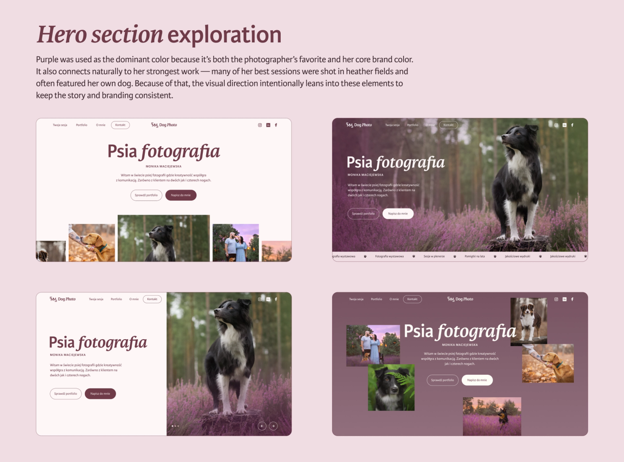 Pet photography is highly emotion-driven. Clients are preserving memories and relationships, not just purchasing visually appealing photos. Because the photographer excels at storytelling and brings humor into the process, we aimed to highlight these strengths in a clear, well-structured way.