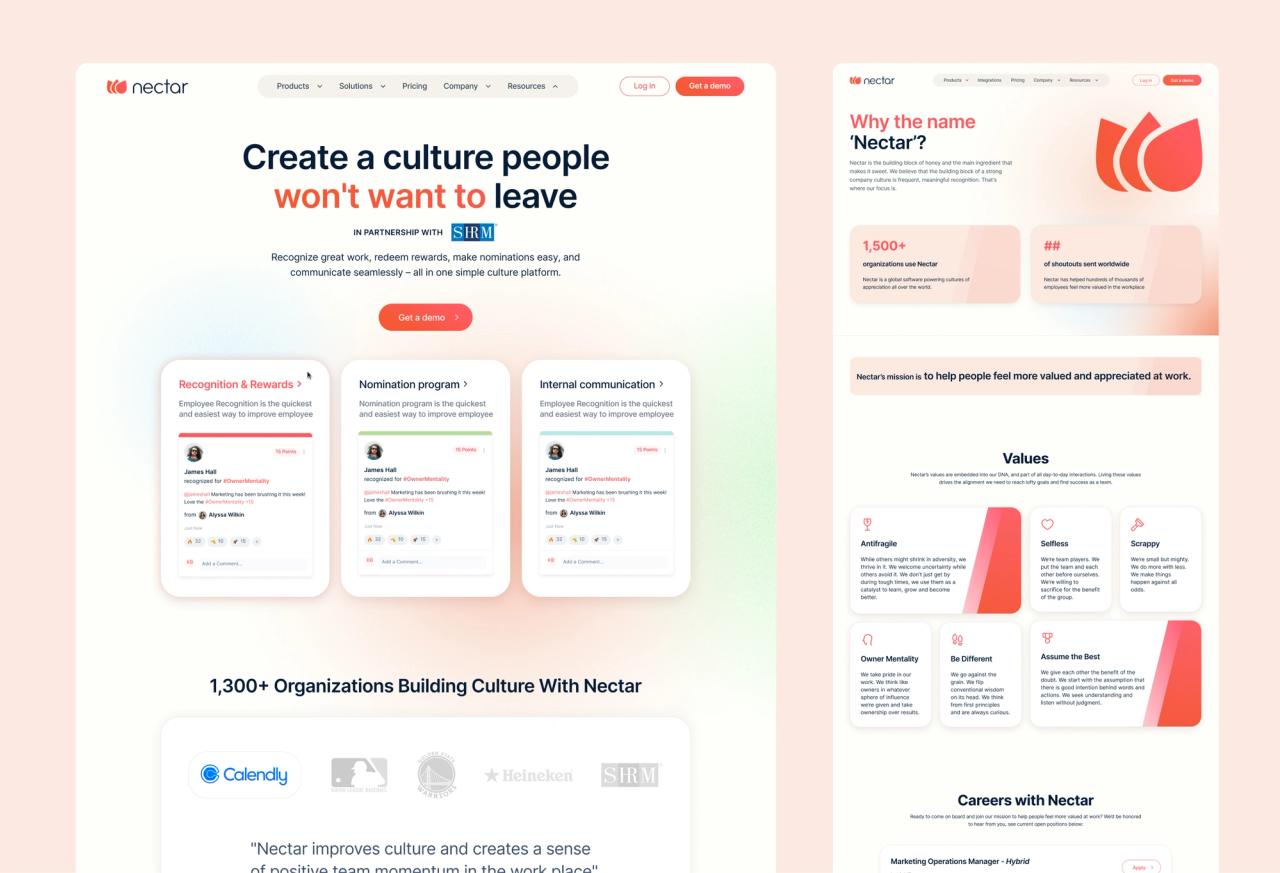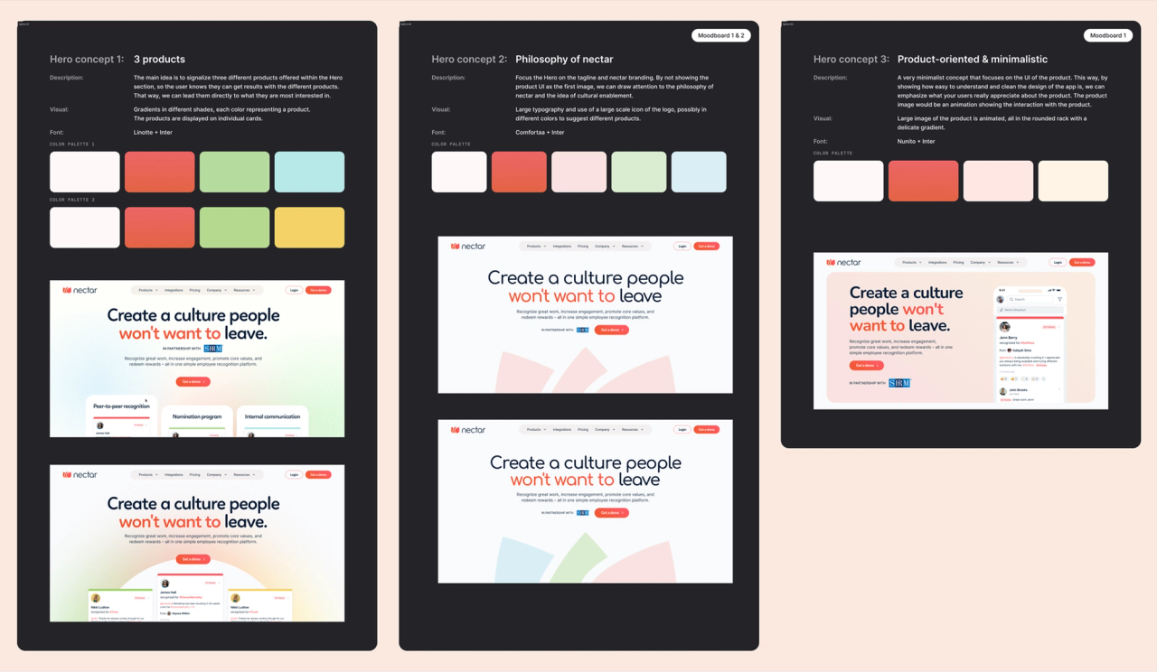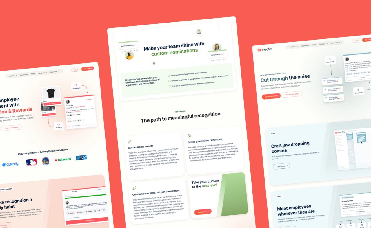 After a deep dive into understanding Nectar's clients and what they are actually looking for, we also analyzed competitor websites to see how they differentiate their products. This allowed us to understand what similar companies are doing, avoid copying their solutions, and learn from their mistakes.