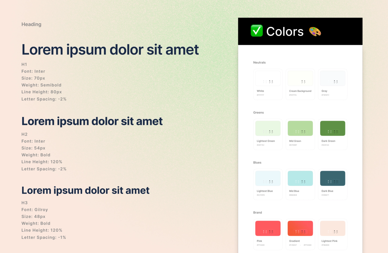 The main font used throughout the site is simple and modern. It needed to be understated, not drawing too much attention to the typography, allowing the colors to take center stage. For all products, we need to create a cohesive color palette consisting of various shades of the three primary colors: green, blue, and our brand red.